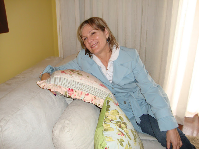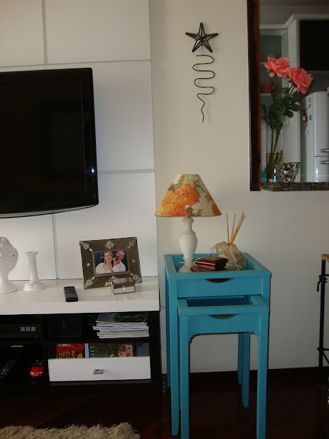 "Querida,sou seguidora de seu blog e amo....por isso quero compartilhar com vc meu cantinho preferido do meu apto, Carmen minha sala é pequena,mais é especial pois qdo meu marido chega do trabalho...depois de um banho,sentamos para conversar,ver TV e tbem namorar. As almofadas mandei fazer igual a que vi em uma revista americana, o quadro é da marca kasal, mas tambem estou te mandando a foto de um jogo de mesaninho que fica na minha sala que eu mesma pintei, pois faço artesanato, vi esta cor em uma revista Claudia decoração e amei.