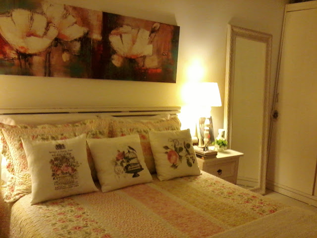 Olha ali sobre a cama, as almofadas da Boutique de Achados - ah que saudade